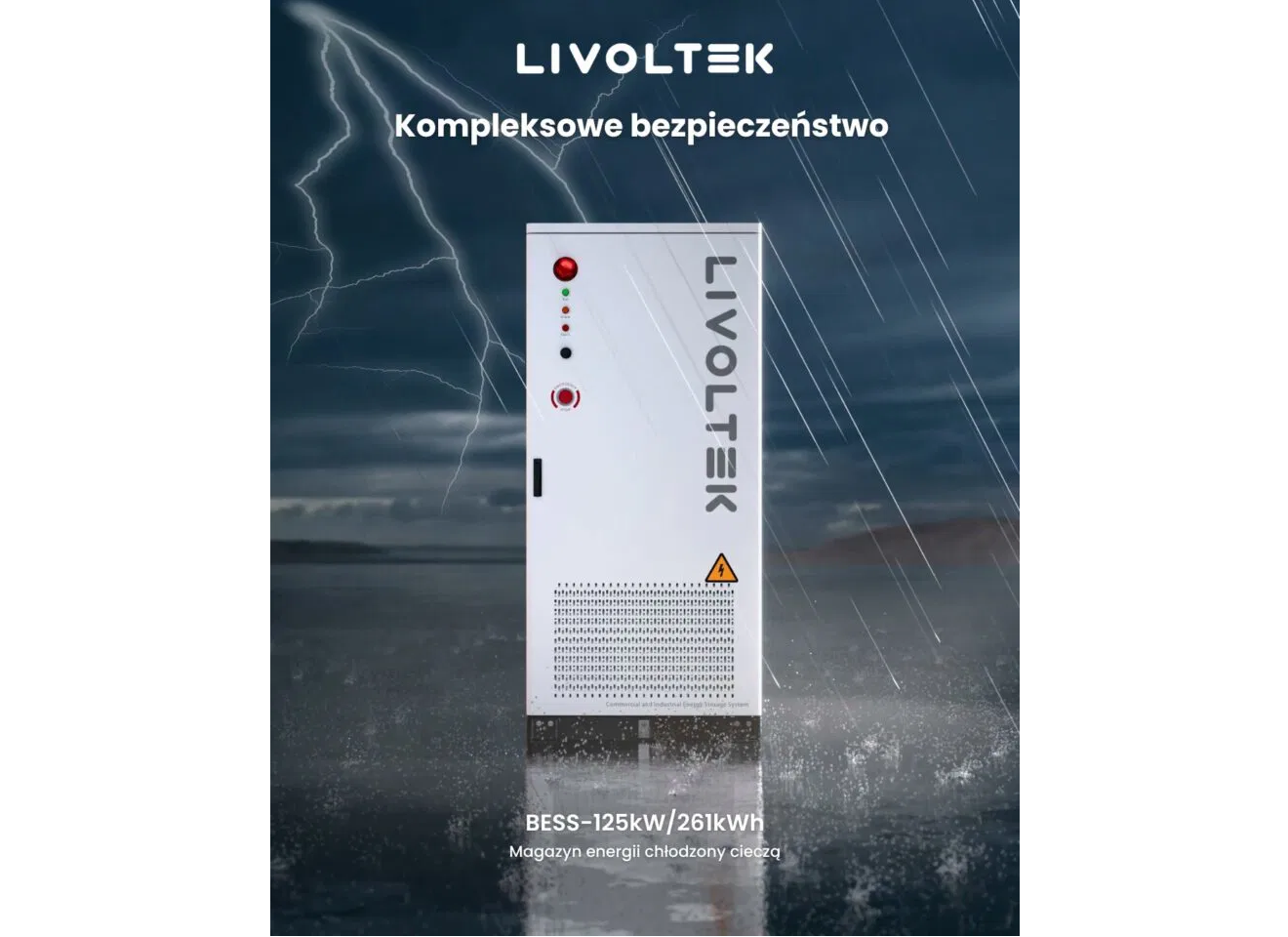 Wysokowydajny, chłodzony cieczą system typu All-In-One „wszystko w jednym”, przeznaczony jest do zastosowań przemysłowych i komercyjnych. Obejmuje baterie typu LFP (litowo-żelazowo-fosforanowa), inteligentne systemy iEMS i BMS, modułową skalowalność do wielu megawatogodzin oraz zaawansowane zabezpieczenia, od monitorowania na poziomie ogniw po warstwy ochrony przeciwpożarowej. Livoltek BESS 261 kWh został zaprojektowany z naciskiem na zapewnienie pełnego bezpieczeństwa w całym cyklu jego użytkowania. W skład systemów zabezpieczeń wchodzą: